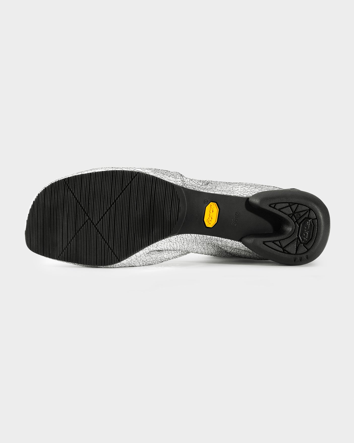柔らかいレザーでたっぷりと寄せたギャザーが足を包み、履き口はゴムで適度な伸縮性にセッティングしています。足指を締め付けないデザインでストレスフリーな履き心地です。スクエアとラウンドの要素を持ったオブリークトゥは、甘くなりすぎない大人のためのバレエシューズを目指しました。どんなボトムスにも合わせやすいデザインで、通年ご着用いただけます。少し深めのデザインで、ソックスやタイツなどとのコーデもおすすめです。アッパーは本革でありながら、撥水機能を持ったシューズです。