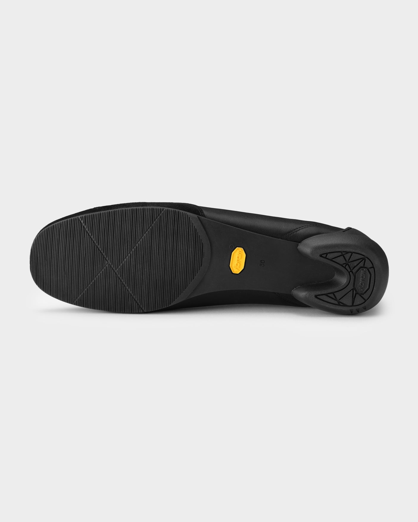 SHISEIオリジナルのヒールパーツとアウトソールはVibram社製で、強いグリップ⼒を発揮するので 、お天気が⼼配な⽇や急な⾬にも安⼼です。